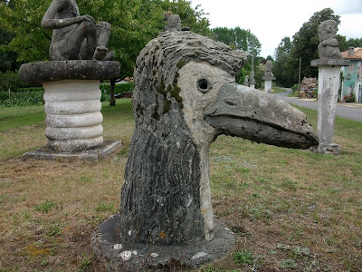 Et pourtant il y a beaucoup d'autres trésors cachés dans cette maison qui appartenait à Lucien Favreau, mort en 1990. Dans le jardin et le terrain, des sculptures en ciment parfois géantes, dans le style de Giacometti, représentent des personnages du village ou d'illustres personnages.