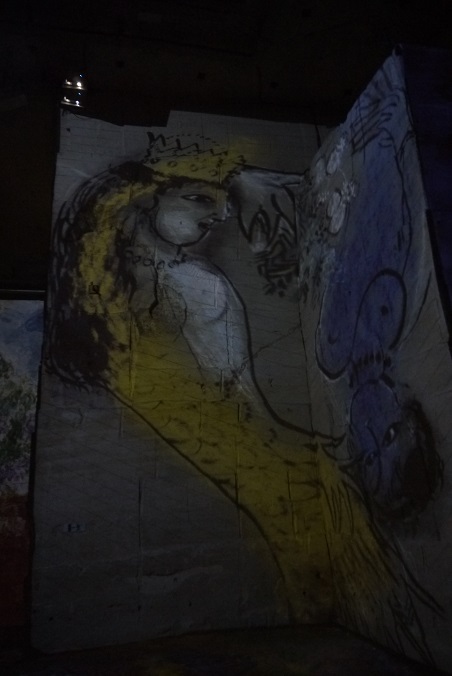 exposition multimédia est conçue comme un véritable voyage à travers les grandes étapes de la création de Marc Chagall auquel un hommage avait été rendu dans le final du spectacle, Monet, Renoir... Chagall. Voyages en Méditerrannée (2013).