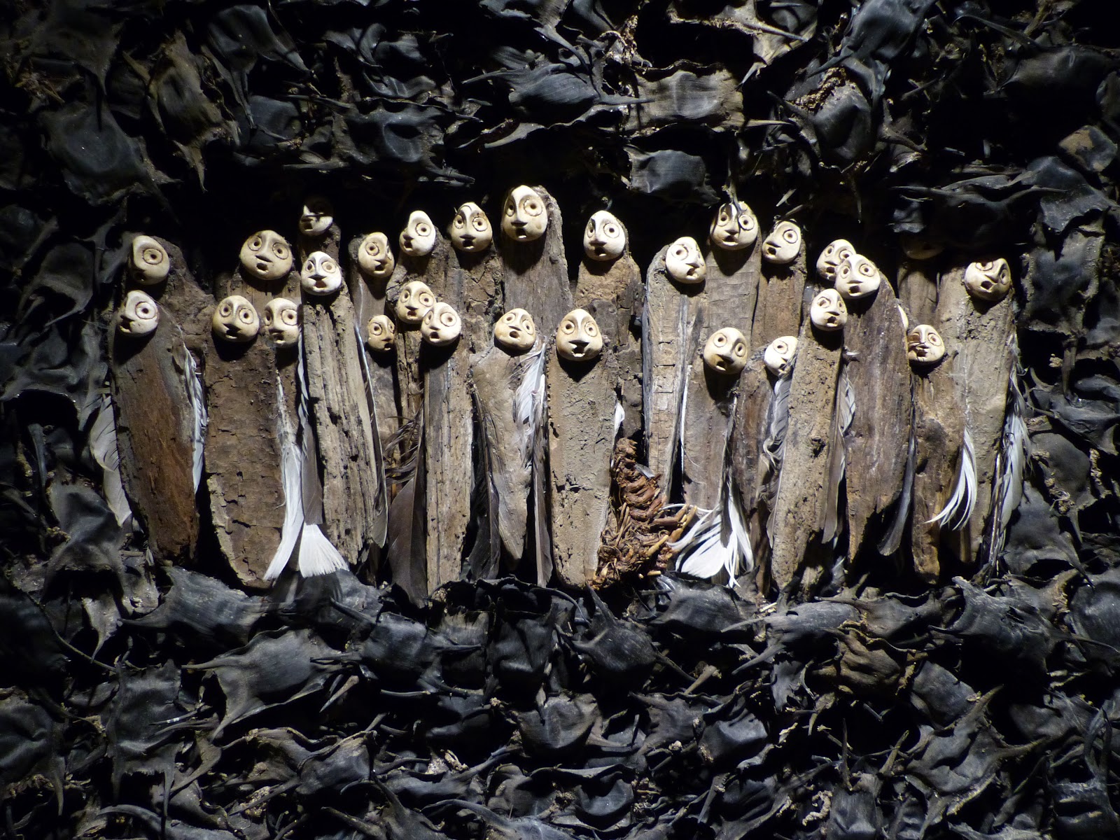 Artiste de renommée internationale, ses milliers de figures composées de bois, d’écorce, de plumes et de terre évoquent une civilisation lointaine, interrogeant notre rapport à la nature."