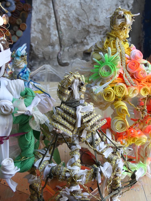 Entre deux il avait fallut y travailler de façon brut, brute et brutale. Les fils colorés de toutes les couleurs d’abord mis en tresses pour pouvoir les extirper facile, finissaient toujours par s’emmêler et je me retrouvais en des mélis-mélos inextricables dans lesquels comme aurait dit ma mère, un chat ne retrouverait pas ses petits. Et puis ces fils me coûtait fort cher, et sauf à contrario quelques bonnes affaires en récupération, j’en investissais beaucoup trop, pour mon petit budget de travailleuse, chargée de famille!