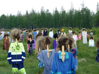 Cette armée d’épouvantails tous semblables appelés « les gens silencieux» ou «Hiljainen kansa » en finnois, est une création de l’artiste local Reijo Kela.