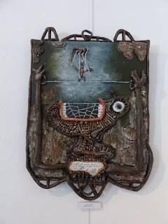 Le lierre et le noisetier ne sont donc pas seuls maîtres dans les œuvres. Il y a aussi de larges sections de branches, ou encore un ancien poirier en espalier récupéré chez son voisin. Des essences qu’il garde naturelles, « Je les nettoie et les patine » Il y a juste quelques coups de pinceaux pour apporter de la couleur, mais par petites touches. « J’ai l’humour, j’ai pas besoin de la couleur », lance l’artiste.