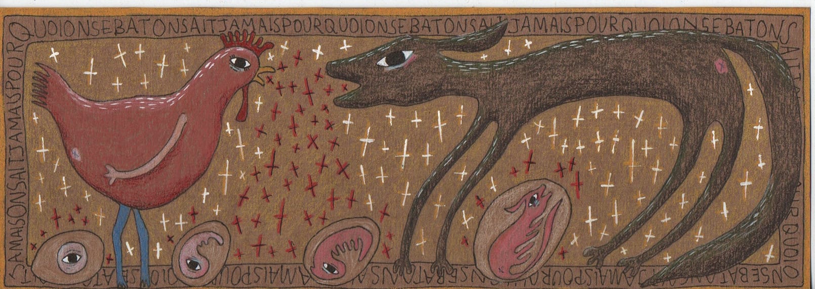 "J'ai toujours dessiné. Je voulais sortir ce qu'il y avait dans ma tête et le rendre concret, réel, palpable en le couchant sur une feuille. Mais pourtant, chaque fois que je dessinais, j'éliminais mon dessin une fois que j'estimais que c'en était assez. C'était comme si je ne voulais pas laisser de trace de mes pensées. Je faisais ça quand j'étais seule. Mais un jour, suite à une blessure qui m'a immobilisée physiquement (en 2021), je me suis retrouvée entourée de mes proches, qui finalement ont vu quelques dessins. Ils m'ont encouragée à ne plus les supprimer et ils voulaient les voir. Je les ai donc gardés et j'ai commencé à moi-même vraiment les regarder. C'est à partir de là que les idées abstraites sont devenues des choses concrètes. Et c'est comme ça que j'ai donné vie à des animaux morts."