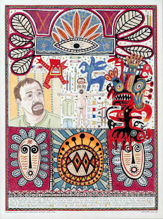 "L’artiste réunit ici ses « héros » en imaginant le portrait de chacun, et en les entourant de leurs chefs-d’œuvre et de leurs outils de travail. Épinglés ainsi, tels des papillons, chacun se donne à voir d’une manière inédite, spectaculaire, intime."