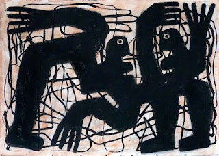 L’œuvre de LOGOVARDA impressionne, au sens physique, quasi anatomique du terme, tant par la force de « l’écriture » que par sa manière décalée et pleine d’humour de mettre en scène ces personnages désarticulés, étirés, véritables marionnettes dont se joue la vie. Oui, les labyrinthes souvent douloureux de l'artiste nous plongent dans la force du mythe, nous y immergent. Il y a là une forme d’expressionnisme puissant qui s’appuie sur les très anciennes narrations de l’Homme et nous emporte.